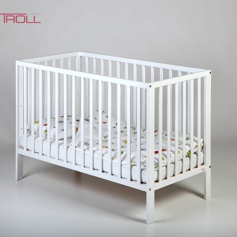 Pent brukt babykrybbe som lett kan flyttes fra rom til rom.