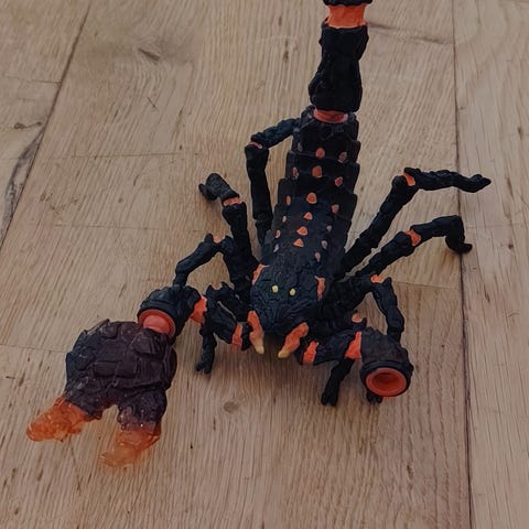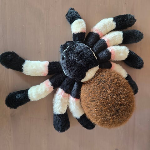Lysende øyne og kan krype bortover gulvet som en edderkopp. Ca 30 cm i bredden.