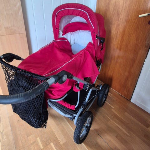 Jeg har brukt til et barn . Men jeg har kjøpt på Finn til han også . Nå trenger han ikke så derfor vil jeg selge denne videre. Det forkler to vogenposer også . Du kan gjerne spørre hvis du lurer på noe:)