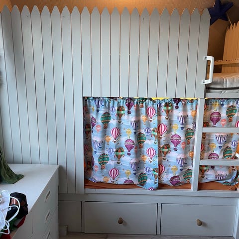Øvre sengen har en tykk madrass på bredde 90cm.