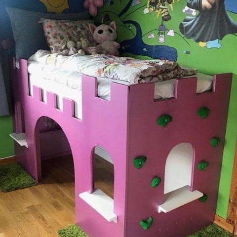 Enkeltseng barneseng med slottsmotiv - godt brukt - må hentes