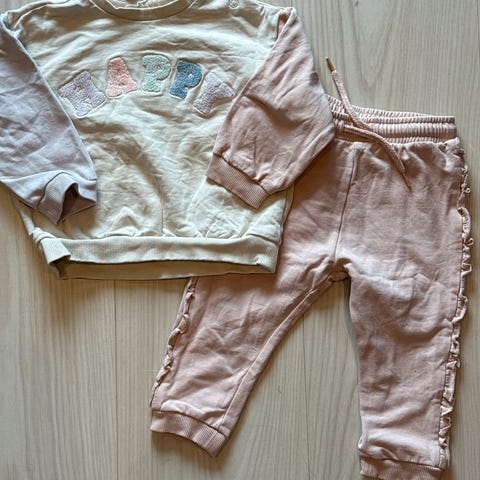 Bukse fra Lil Atelier str 86, romslig i str. brukt sammen som sett. Buksen har to små merker. Passer perfekt som sett til barnehagen.