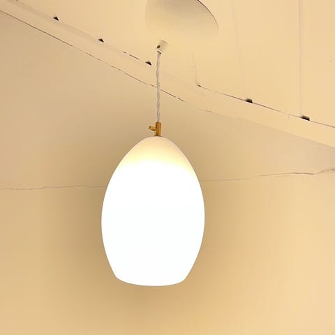 Havana stålampe fra Foscarini i fargen hvit/perlemor selges billig fordi den mangler en av de fire plastdelene som utgjør lampens form.