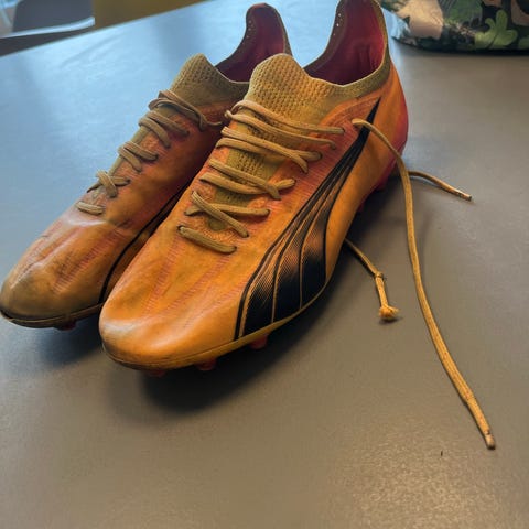 Selger fine fotballsko fra Puma i str 43. Lite brukt siden gutten vår vokste fort på bena og trengte nye sko. Kostet ny i sommer: 1100kr.