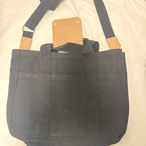 Vesken har et rutemønster og lukkes med glidelås. Den har en stropp som kan brukes til å bære vesken i hånden eller rundt håndleddet.