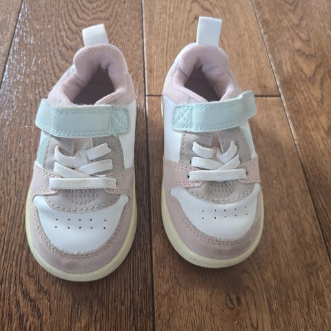 H&M Barne Sneakers for unisex i størrelse 30. Skoene har en kombinasjon av beige og hvite farger med borrelås og lisser for enkel tilpasning. Sålen har godt grep og skoene er egnet for daglig bruk.