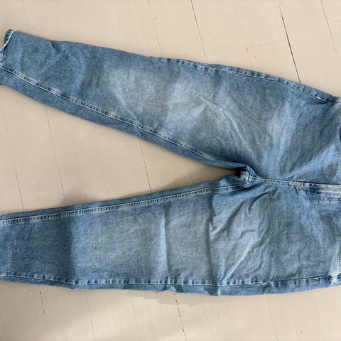 Dongeri bukse med slitte detaljer. Den er slik i modellen og er bare brukt 1 gang.