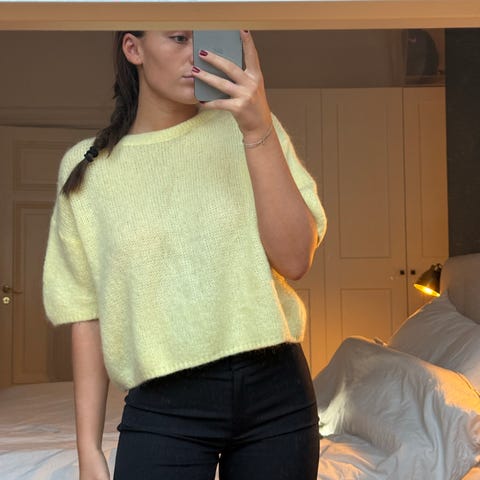 Strikketgenser i lysblå fra bikbok, veldig fin men blitt noe nuppete. Størrelse M