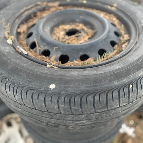 Dekkene er brukte, men fortsatt brukbare.