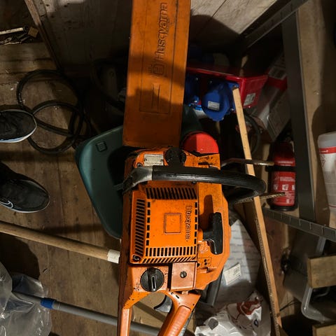 Stihl FS 36 motorsag med bensinmotor. Utstyrt med håndtak og skjæreutstyr for gress og små busker. Modellen har en kompakt design, egnet for lett gress- og hagearbeid.