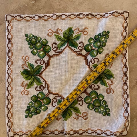 Duk med broderte snøflakmønstre i hvitt. Passer som dekorativ tekstil til bord eller andre flater.
