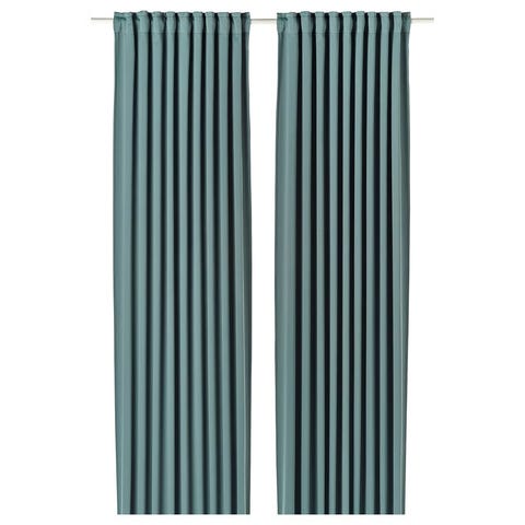 IKEA majgull lystette gardiner i mørkegrått stoff. Gardinene har folder og er designet for å dekke vinduer, bidra til å skjerme for lys og gi rommet et stilrent uttrykk.