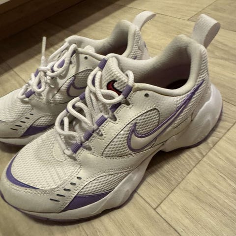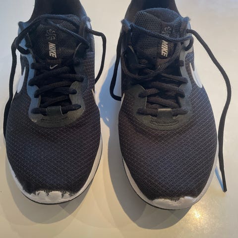 Nike løpesko i størrelse 38, designet for løping. Skoene har svart farge med hvite detaljer og er laget for å gi komfort og støtte under løpeaktiviteter.