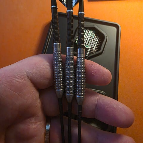 Pent brukte med noen merker, blir jo ekstra synlige i sorte darts. Ubrukte flights og stems.