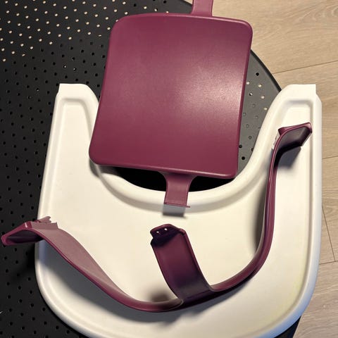 Stokke Babysete i beige farge. Designet for å gi støtte og sikkerhet til små barn. Setet har justerbare stropper for trygg festing. Passer til bruk med Stokke tripp trapp systemet.
