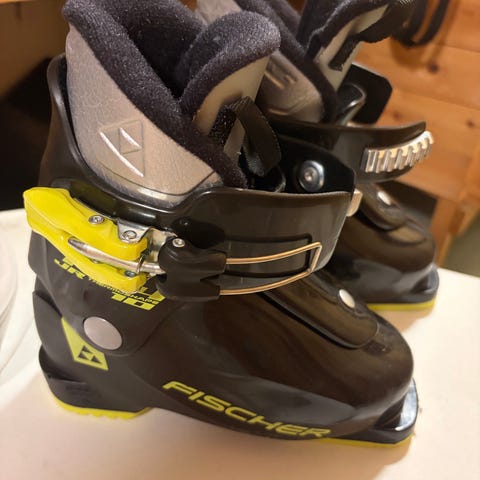 Fischer RC4 Race Jr. alpinski støvler i svart og gul farge. Designet for barn, med justerbare spenner for god passform og støtte under skikjøring.