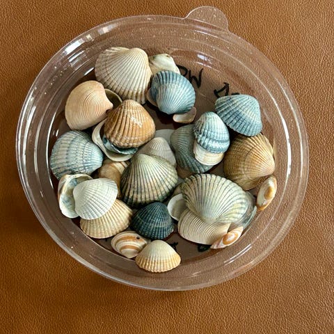 Naturmateriale skjell som kan brukes til dekorasjon eller håndverk. Også fine som bordkort eller små serveringskåler. F.eks i bryllup. Skjellene varierer i farge og størrelse, med naturlige mønstre og teksturer. Egnet for ulike kreative prosjekter og innredning.