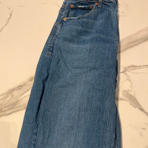 Levi's Denim jeans i blå farge, damemodell i størrelse 34 med midjemål W33. Laget av denim materiale. Jeansene har klassisk design med lommer og knappelukking. Kjøpt på Carlings høsten 2025