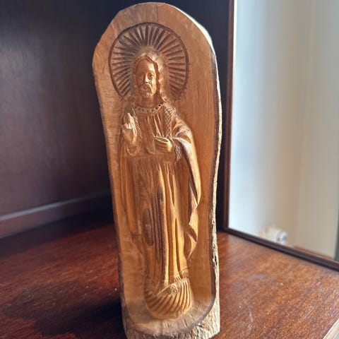 Ikon Kors i tre med metallfigur
