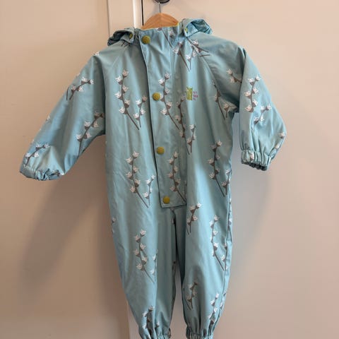 Reimatec parkdress i str 98. Litt slitt i kneet og stroppene kan gjerne byttes snart, men ingen hull ellers.