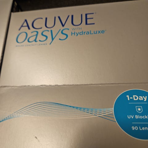 Acuvue Oasys 1-Day kontaktlinser. Styrke -1.00, basekurve 8.5, diameter 14.3 mm. Pakning med 90 linser. Uåpnet.