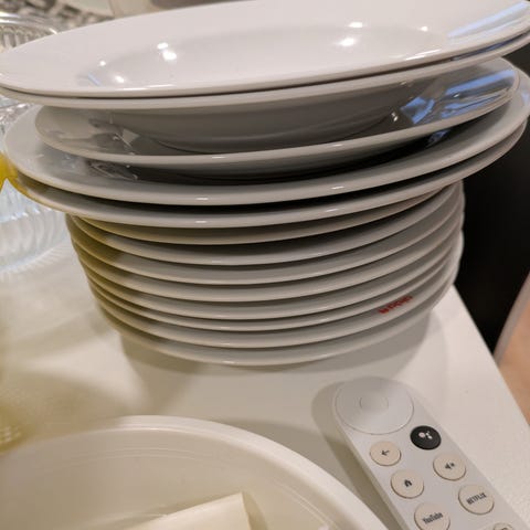 Servise med 12 stk 27cm tallerkener + 2 stk 22cm dype tallerkener.