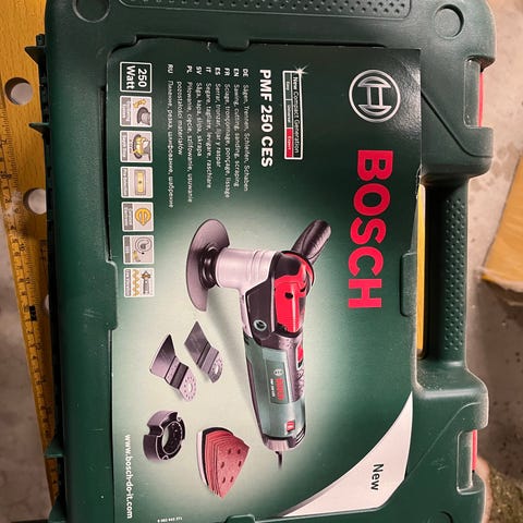 Bosch PMF 180 E Multi multiverktøy med tilbehør. Leveres i koffert med ulike slipeskiver og bruksanvisninger.