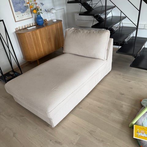 Pent brukt Söderhamn sjeselong i fargen Gunnared Beige med eikeben.