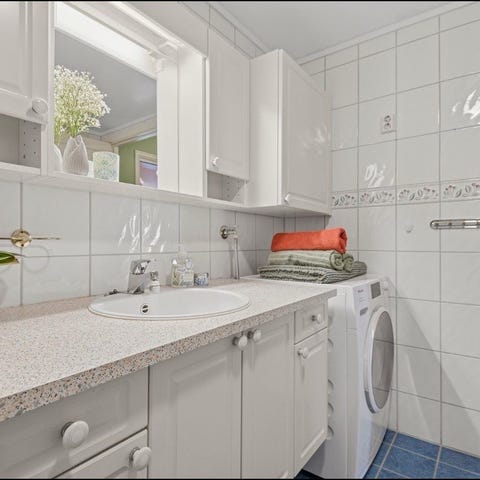 Baderomsinnredning med vask og speil