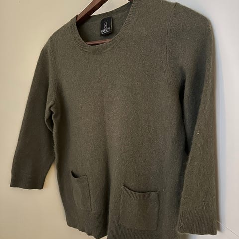 Jakke i deilig kashmir/bomull . God lengde. Fine flettedetaljer.. Lite brukt. Passer til str S og M.
