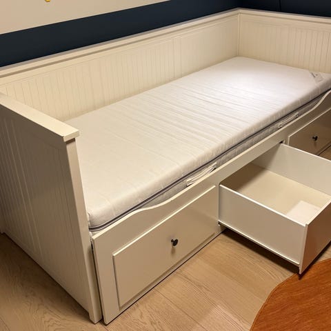 Praktisk og plassbesparende loftseng fra Jysk, med skrivebord og oppbevaring