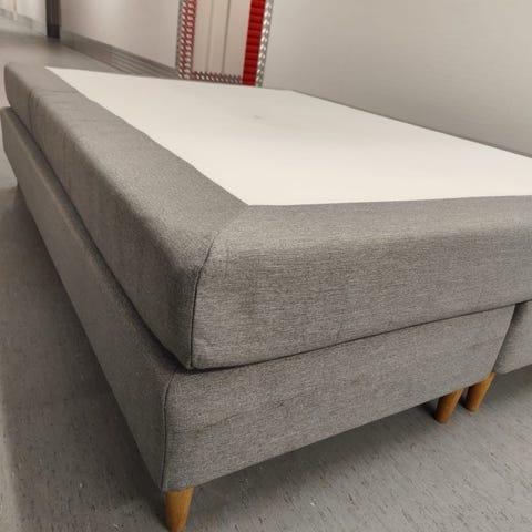 Selger en romslig kontinentalseng i størrelse 180×200 cm, pent brukt og i god stand. Sengen har et stilrent uttrykk i mørkt stoff og solide ben som gir et moderne og tidløst