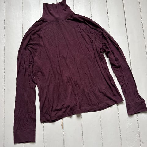 Flott ribbestrikket cardigan i ullblanding fra Pia Tjelta! Nydelig delikat lilla/mørk burgunder farge (lyset påvirker opplevelsen av dagen, se bildene).