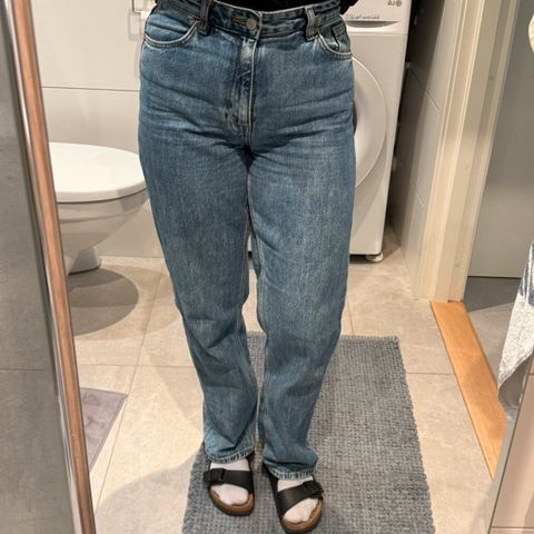 Jeans fra Monki i størrelse 27. Har blitt brukt en del, men er masse bruk igjen! Veldig myke og gode.