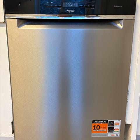 Whirlpool underbygd oppvaskmaskin med standard størrelse. Maskinen har flere kurver for oppvask og bestikk, og innebygde kontrollknapper på frontpanelet. Designet for integrering under benkeplate i kjøkken.