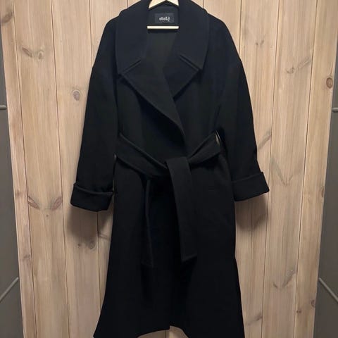 Nydelig ella&il Adele Coat Kåpe i størrelse XS. Jakken er 80 % ull, er pent og lite brukt. Noen rynker pga oppbevaring som helt sikkert lar seg rette ut.
