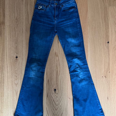Pent brukt Lois Raval high rise flare jeans i fargen teal.