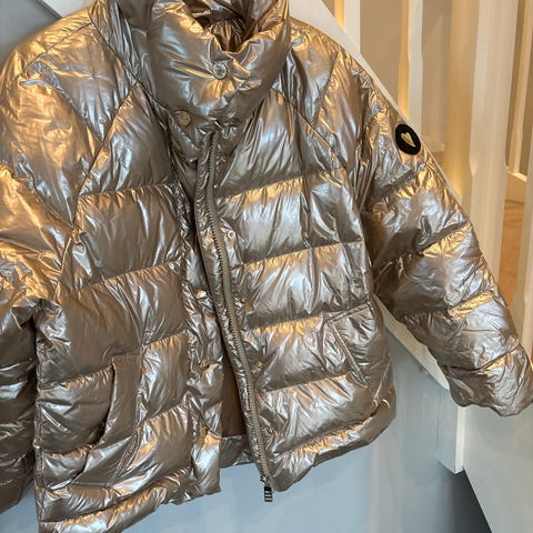 Fint brukt dunjakke. Er ein bitteliten rift på 5mm i ytterste laget nede ved venstre lomme, men er ikkje gjennom til dunet. Derfor selges den rimelig.