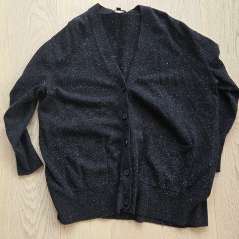COS kardigan i nydelig blåfarget, i 50% ull, 32% lyocell (naturmateriale) og 16 polyamid og 2% elastan. Kardiganen er ubrukt òg merkelappen henger på.