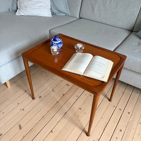 Teak salongbord med magasinhylle og nydelige detaljer. Retro - Vintage!