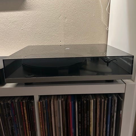 Pen pro-ject debut 3. Et par mindre bruksmerker, ellers fin. Platespilleren går ikke rundt. Reagerer når jeg skrur den på, men vil ikke gå rundt. Mangler også både d fra rotor til skive, samt lodd og stift. Selges derfor billig.