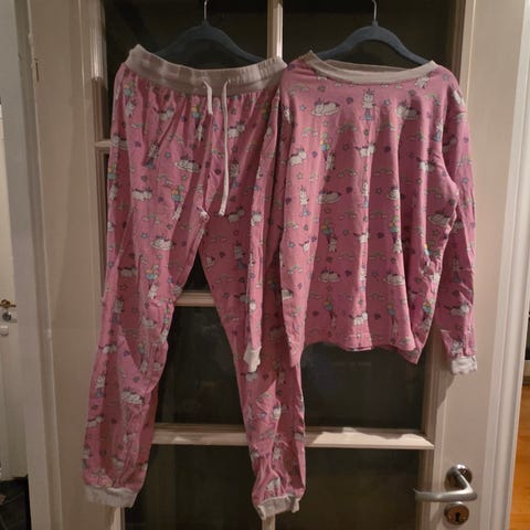 Det står på noen av klærne 158-164, men jeg synes de er en-to størrelser mindre, derfor har jeg skrevet at de er ca. 140 str. I hvert fall dattera mi brukte de når hun var 11-12 år.
