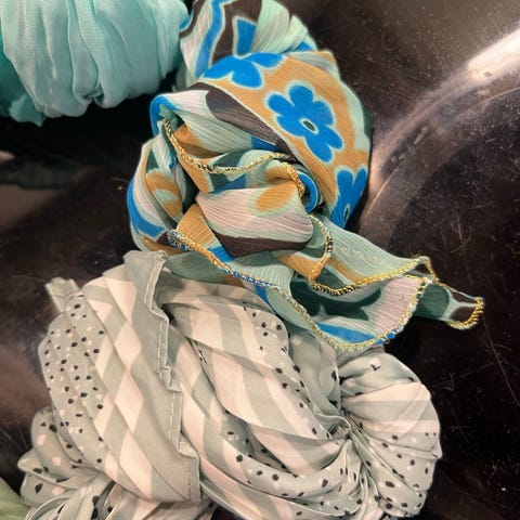 1 rød rutet skjerf (løse tråder se bildet)50 kr