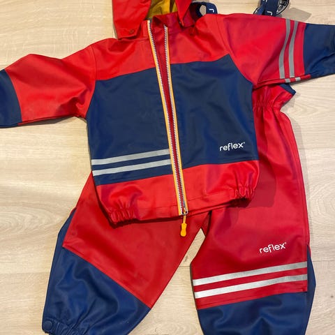 Regntøy (jakke og bukse med seler). Må hentes