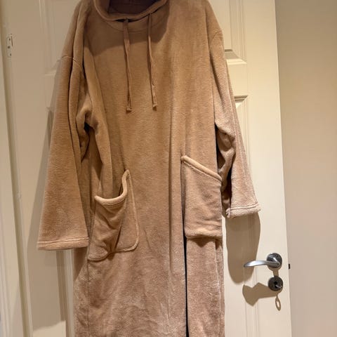 Morgenkåpen er helt ny. Passer både kvinner og menn. Kjøpt som gave, men den viste seg å være veldig stor. 100 % Cato. Lengde 135 cm.