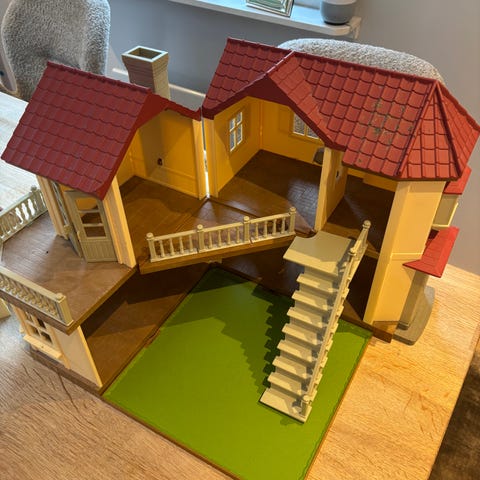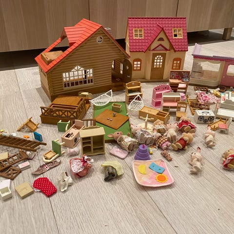 Sylvanian Families hus,trehytte, 2 biler og mange figurer etc