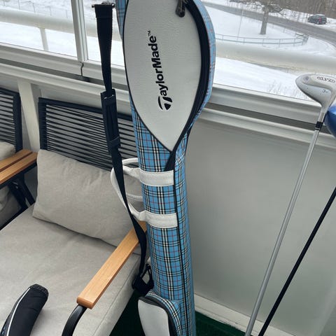 Black Owl Golf halvsett med bag og køller. Settet inkluderer golfbag og flere golfkøller. Fargene er hovedsakelig svart og hvitt. Fint nybegynnersett. Kom med bud :)
