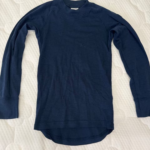 Pent brukt sett med trøye og stillongs fra merket Aretti. Farge dyp blå. Str. 10 år. Laget av 50% ull og 50% polyester.