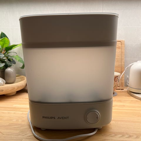 Philips Avent elektrisk dampsterilisator for babyflasker, smokker og utstyr. Kjapp og enkel måte å sterilisere det du trenger til baby.