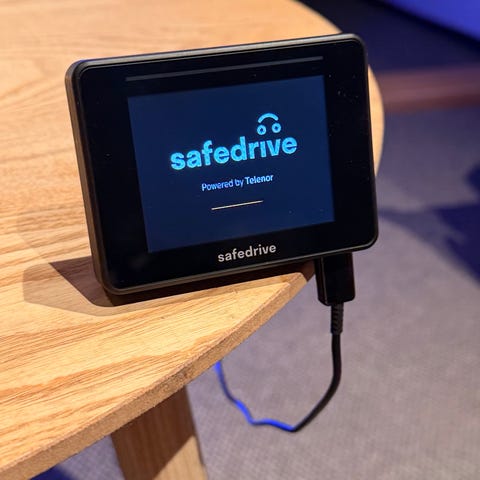 Selger Safedrive Pro dashbordkamera med inkludert tilbehør.